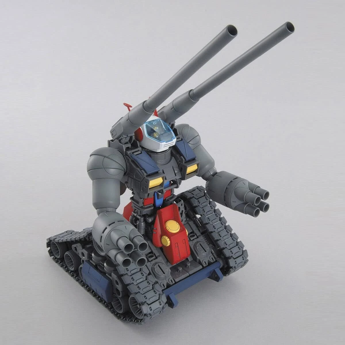 A fusion of a tank with the upper body and arms of a Mobile Suit, the Guntank was the first Earth Federation Mobile Suit produced under “Project V.” It served admirably protecting White Base and fighting alongside Gundam and Guncannon during the One Year War in the 1979-80 “Mobile Suit Gundam” anime. This Master Grade release of the prototype artillery Mobile Suit comes in snap-fit plastic parts molded in color and will be fully poseable upon completion. It features suspension caterpillar treads that rotate realistically and has suspension arms inside the treads that allow for it to be displayed traversing over uneven terrains, plus its head console lights up through the use of an included LED unit (two coin batteries required, not included).