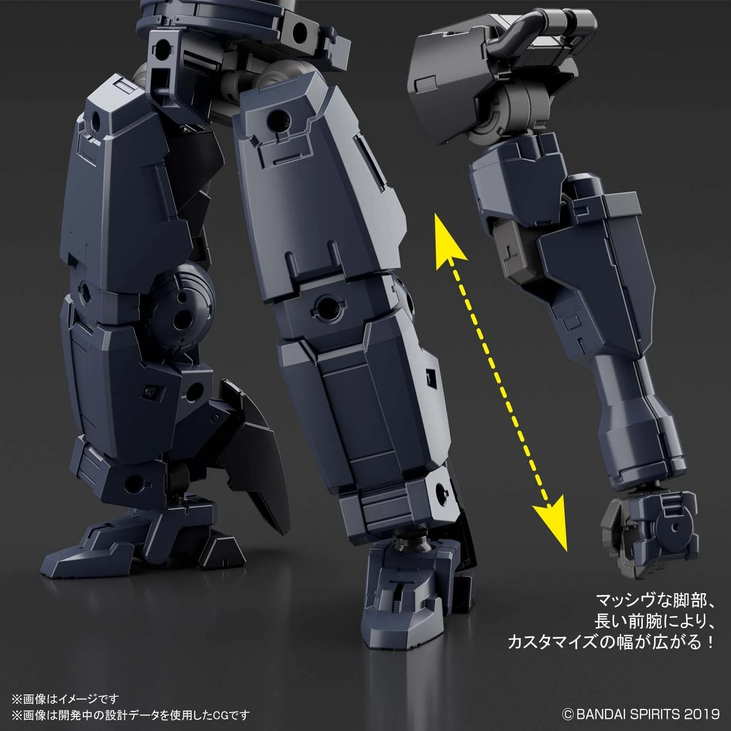 Molded in dark gray, it features massive legs, long forearms, and an expandable backpack. New hip joint parts are included to allow for various arrangements of the body shape, and the chest parts can be switched for various Portanova Option Armor parts (sold separately). Order today, and expand on your 30MM customization options!