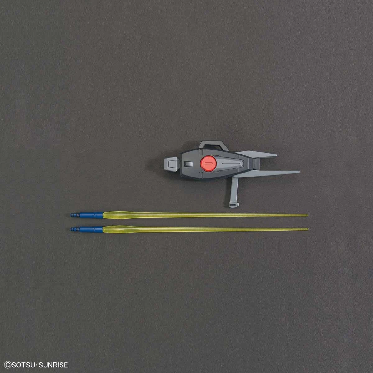 The Barzam from “Zeta Gundam” features ball joints for a wide range of motion, and it’s armed with its beam rifle, two beam sabers, and the Vulcan Pod System. The mono eye is a clear part, and many of the other parts are molded in color to make painting minimal or unnecessary; foil stickers are included for the markings. Molded in dark gray, red, blue, yellow and black plastic.