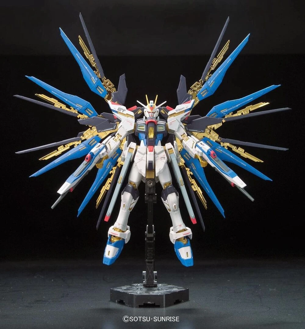 The Real Grade Strike Freedom is the first RG kit with the frame molded in this gold color. The Dragoons even feature gold plating for that beautiful result right out of the box. Does not include a stand.