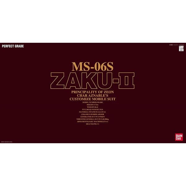 Bandai’s Perfect Grade Zaku is the perfect partner for the Perfect Grade RX-78 released before it. This variation of the kit is moulded in the red colouring of the Zaku as used by Char Aznable in the series, and also has a different backpack unit and leg thruster units than the previously-released green Zaku.