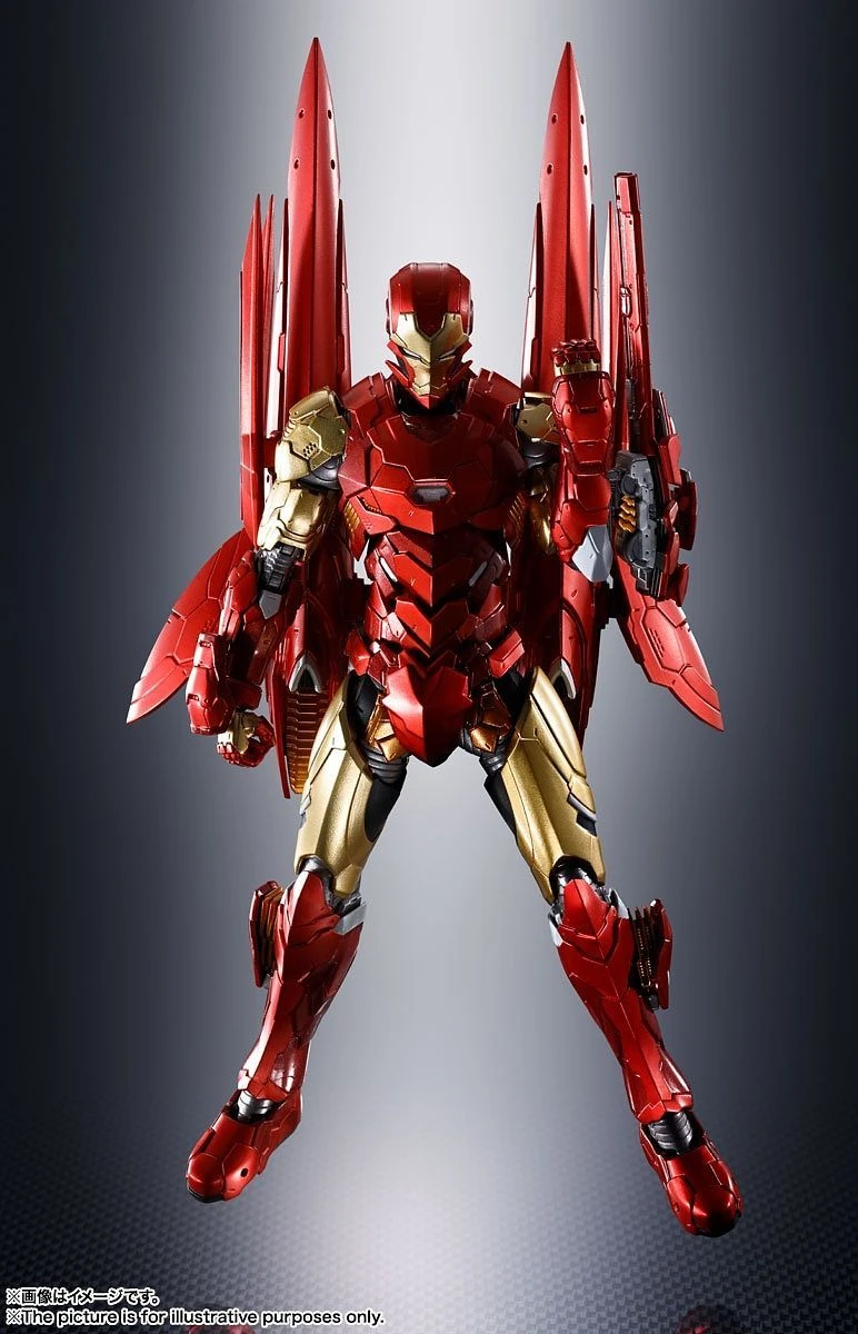 In collaboration with Marvel’s new “Tech-On Avengers” comics, this new S.H.Figuarts action figure of Marvel’s Iron Man was designed by Eiichi Shimuzu, a manga artist who has created numerous heroes! This suit emphasizes a mechanical appearance, with die-cast legs and metallic paint. A wide range of motion is created with an approach different from other MCU figures, making all kinds of poses possible — even Iron Man’s iconic “hero landing” pose with one knee and one fist down! Repulsor effect parts are also included for his hands and the soles of his boots. With parts replacement, you can reproduce Iron Man’s DH-10 mode, with partially armored head, shoulders and shins; his backpack features boosters, and plenty of effect parts are included. Get this stunning new Iron Man figure for your own collection today!