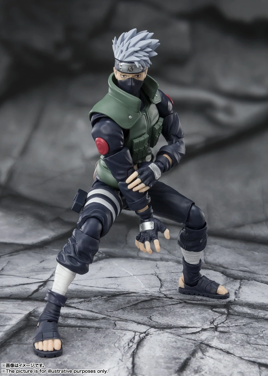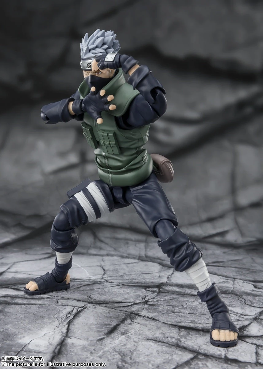 Kakashi Hatake from “Naruto Shippuden” returns to the S.H.Figuarts action-figure lineup from Bandai! The latest joint mechanisms make it possible for him to get into the “Raikiri” pose with great ease, as well as just about any other pose you can come up with, and facial parts for two different types of eyes are included — Sharin Eye and Mangekyou Sharin Eye! His favorite “Flirty Paradise” manga is also included, as is a part to reproduce the rare smile. Order him for your own collection today!