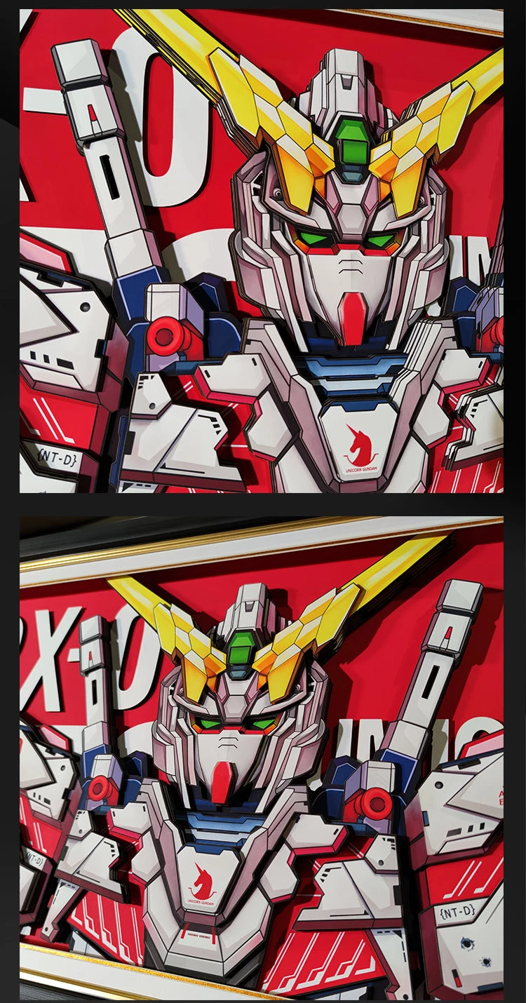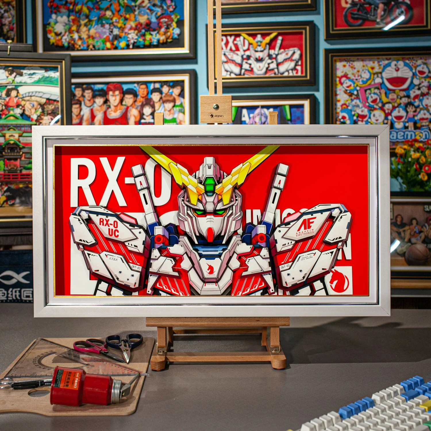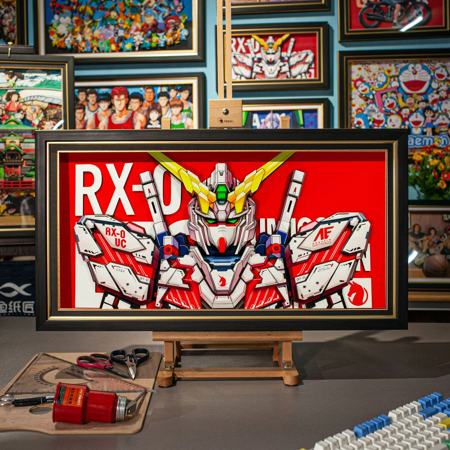Framed Art Handmade 3D Decor Paper Art RX-0 Unicorn Gundam Picture