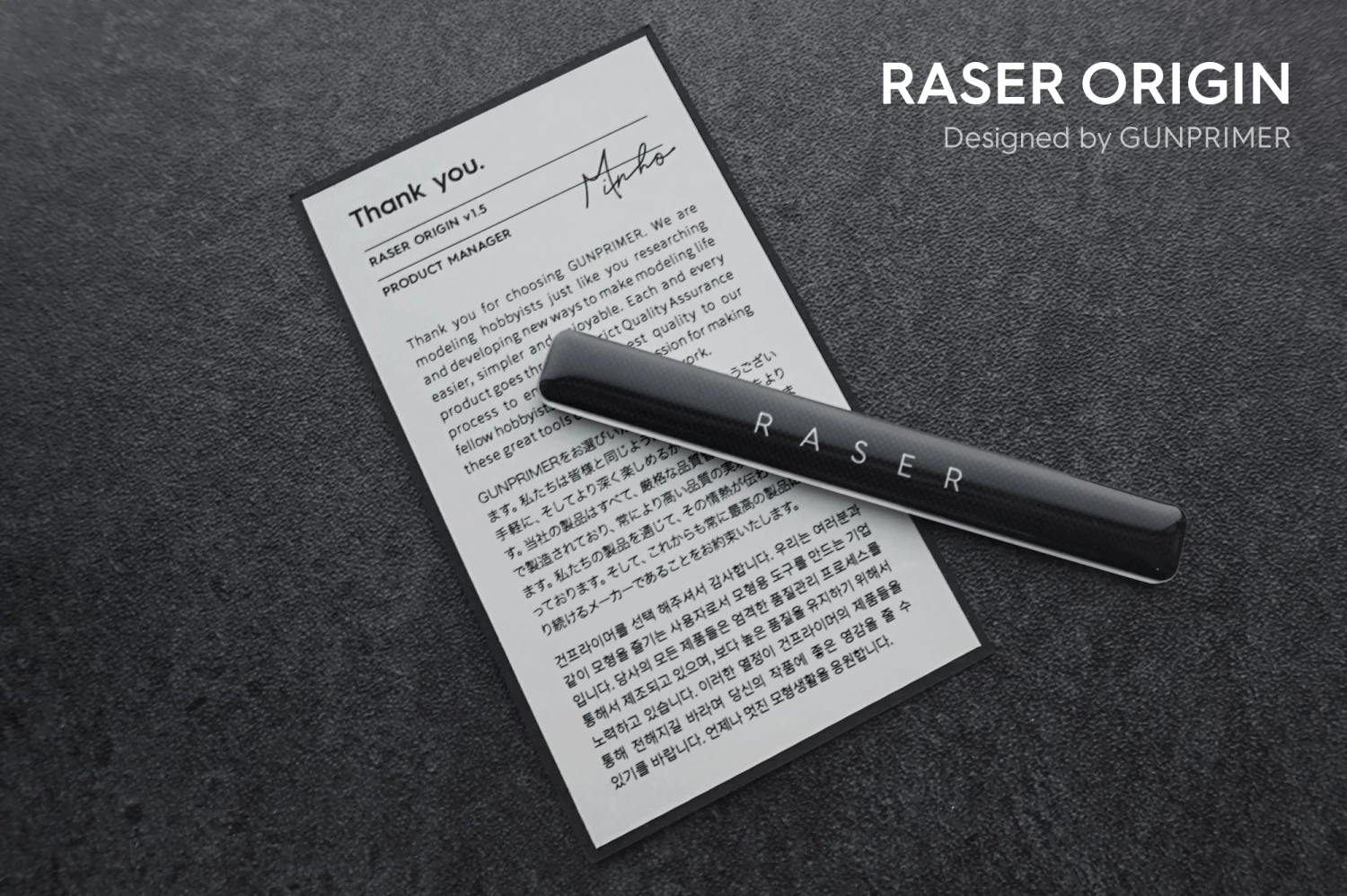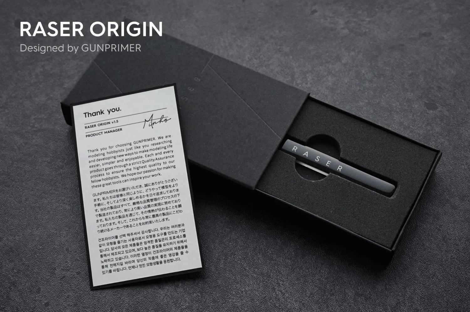 The name RASER is derived from combining the two words GATE + ERASER. It’s a revolutionary sanding tool that cleanly removes gate(nub marks) without scratches. Celebrating the two year anniversary, we have renamed it to RASER ORIGIN with a newly designed case. Experience the new way of removing gate(nub marks) without any stress.