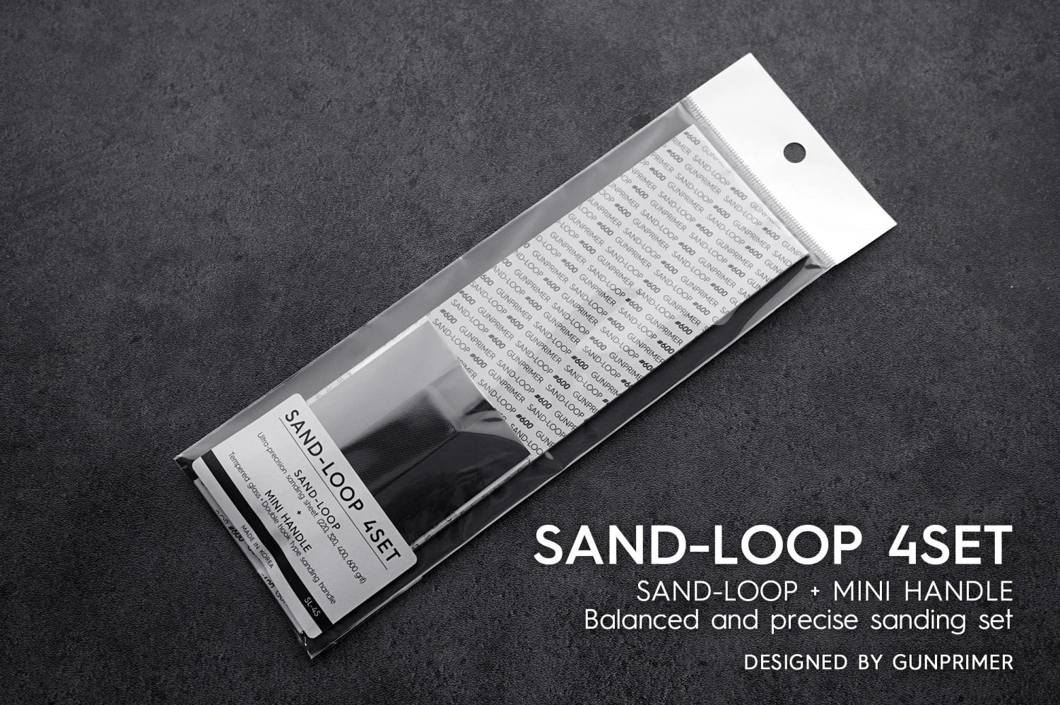 Each set includes the SAND-LOOP (sandpaper) with four preferred grits for plastic modelling.