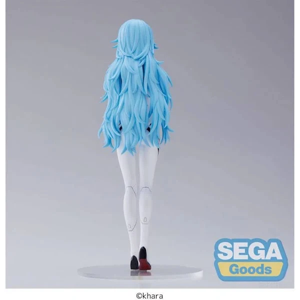 From SEGA. From the Evangelion: 3.0+1.0 Thrice Upon a Time movie comes a new SPM Statue of Rei Ayanmi.She stands about 9 1/2” tall and is featured in her white plugsuit with long flowing hair.