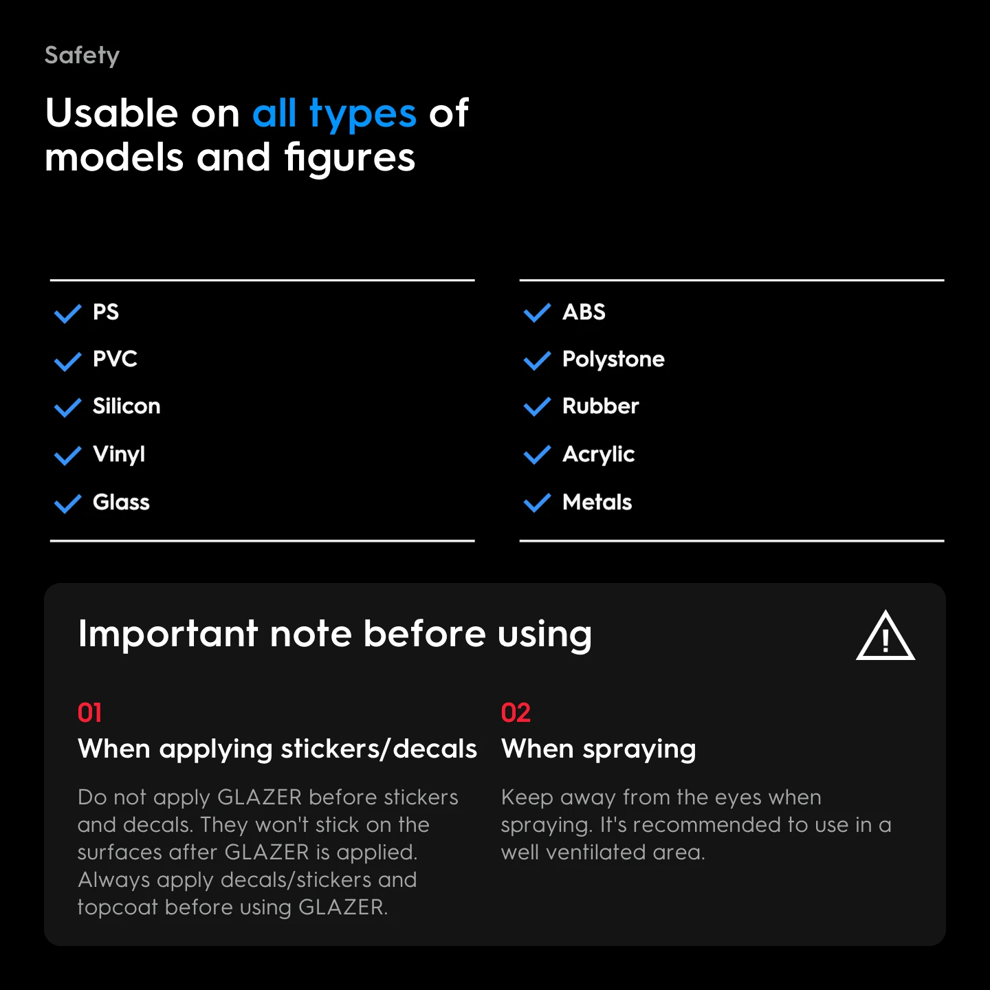 - Good for all types of model kits (Gunpla, Military, Mini Figures)
