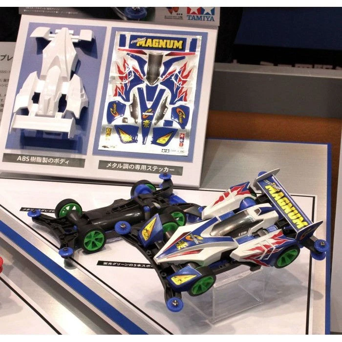 The Cyclone Magnum is now available on the modern AR Chassis. The futuristic body was previously mounted on the Super chassis. The Japanese Mini 4WD cartoon “Let’s & Go!” is a known throughout Japan and this vehicle was featured in the cartoon and it was driven by one of the main characters Go Seiba. The AR Chassis places great emphasis upon aerodynamics, also offering users a blend of durability, customization and ease of maintenance.